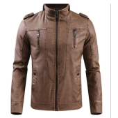 The Men’s Classic Military-Style Brown Leather Jacket blends rugged army-inspired design with urban sophistication. Made from high-quality faux or genuine leather, it features a rich brown finish, reinforced shoulder epaulettes, and a stand-up ribbed collar for both style and comfort. Its practical yet stylish structure makes it a versatile choice for casual outings or adventurous road trips.