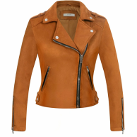 This sleek, tan leather jacket combines a bold biker style with a soft, suede-like finish. Featuring asymmetric zippers and structured details, it offers a sharp look while ensuring comfort. Ideal for casual wear or a chic night out, the jacket adds an edge to your wardrobe.